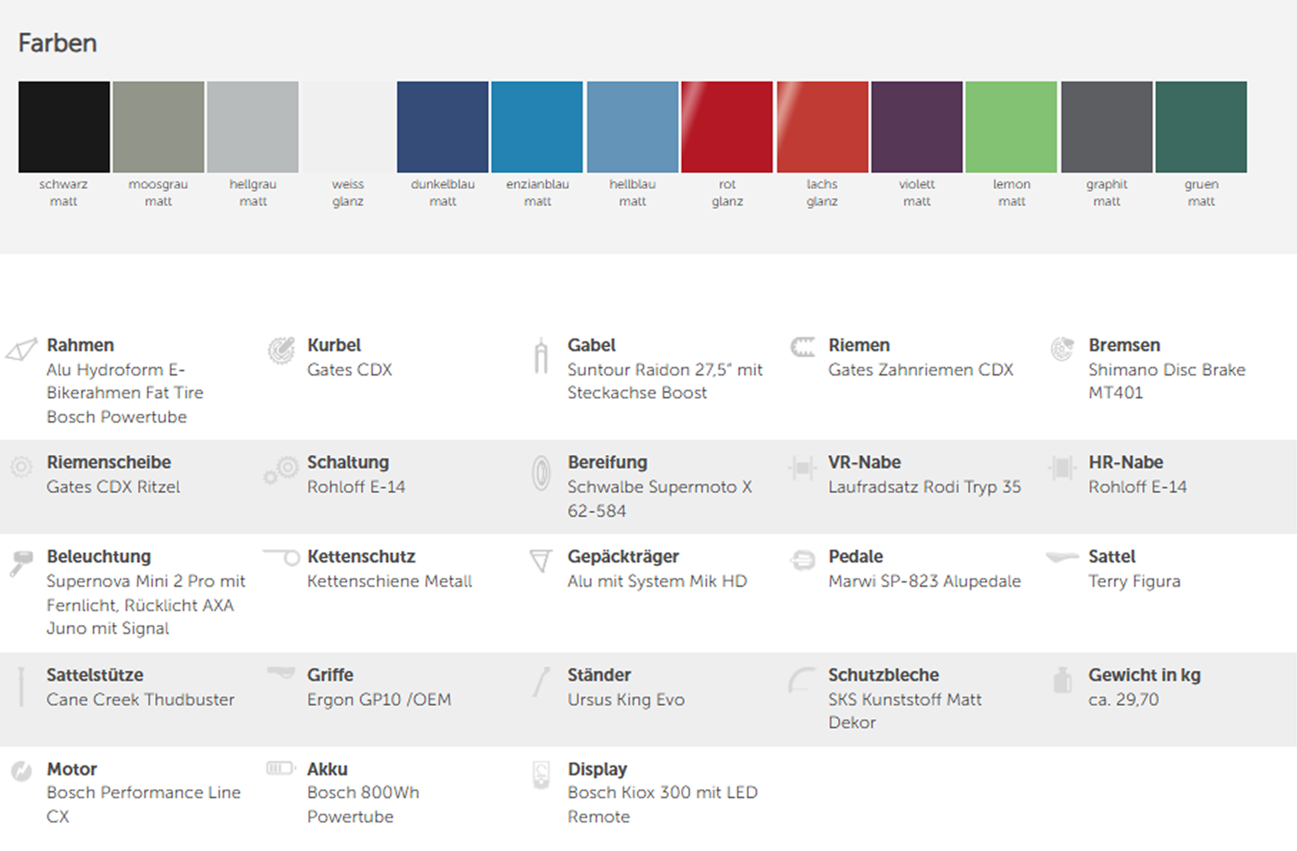 Mit einem Gesamtgewicht von ca. 29,7 kg verbindet dieses E-Bike robuste Bauweise mit hochwertiger Ausstattung und maximaler Fahrfreude.