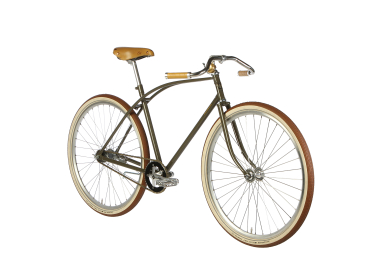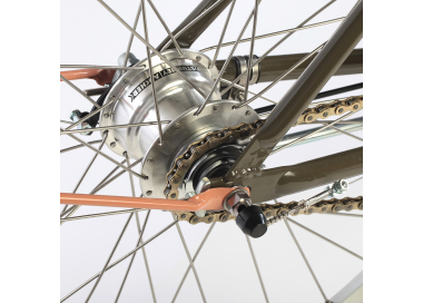 Some striking features include thick Fat Frank balloon tires in different colors, available with two gears (Sturmey Archer S2C Duomatic), three gears (Sturmey Archer), or eight gears (Shimano), and a choice of different braking systems.