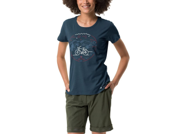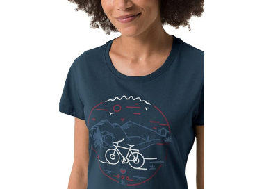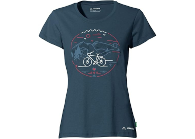 The Cyclist V Women’s T-Shirt by VAUDE combines sustainability with comfort and performance. The fabric blend of organic cotton and wood fiber (lyocell) ensures a soft feel, breathability, and quick-drying properties—ideal for cycling and everyday wear.