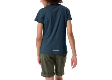 Featuring a classic fit with a crew neck, short sleeves, and a subtle front print, this T-shirt is both versatile and functional. The VAUDE Green Shape label highlights its sustainable design.