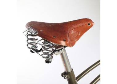 La version Comfort Pack est conçue pour une position de conduite droite, avec un guidon haut équipé de poignées en cuir couleur miel, une selle Brooks confortable et des pédales en aluminium antidérapantes.